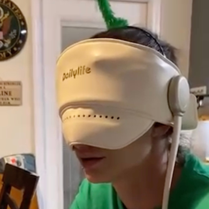 A massager designed for moms that uses soothing heat and gentle pressure to relax the temples after an exhausting day